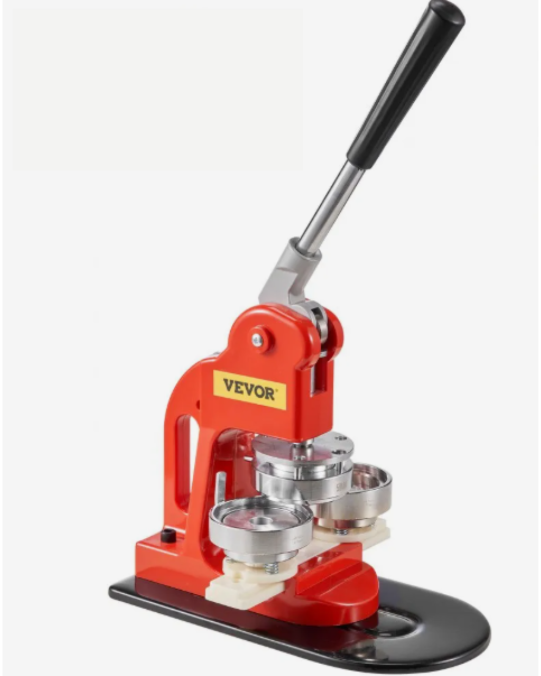 This machine allows you to design and make your own 58 mm (2.28 in) pin-on buttons, in either metal or plastic.