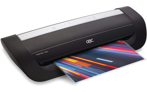 The GBC Fusion Plus 7000 Laminator Machine is a machine that uses transfer adhesive film on rollers to laminate documents up to 12 inches wide. The Laminator heats up within 1 minute and is compatible with pouches 3, 5, 7 and 10 mm thick. The Laminator is a great way to preserve documents, photos and other materials to protect them from wear and tear.