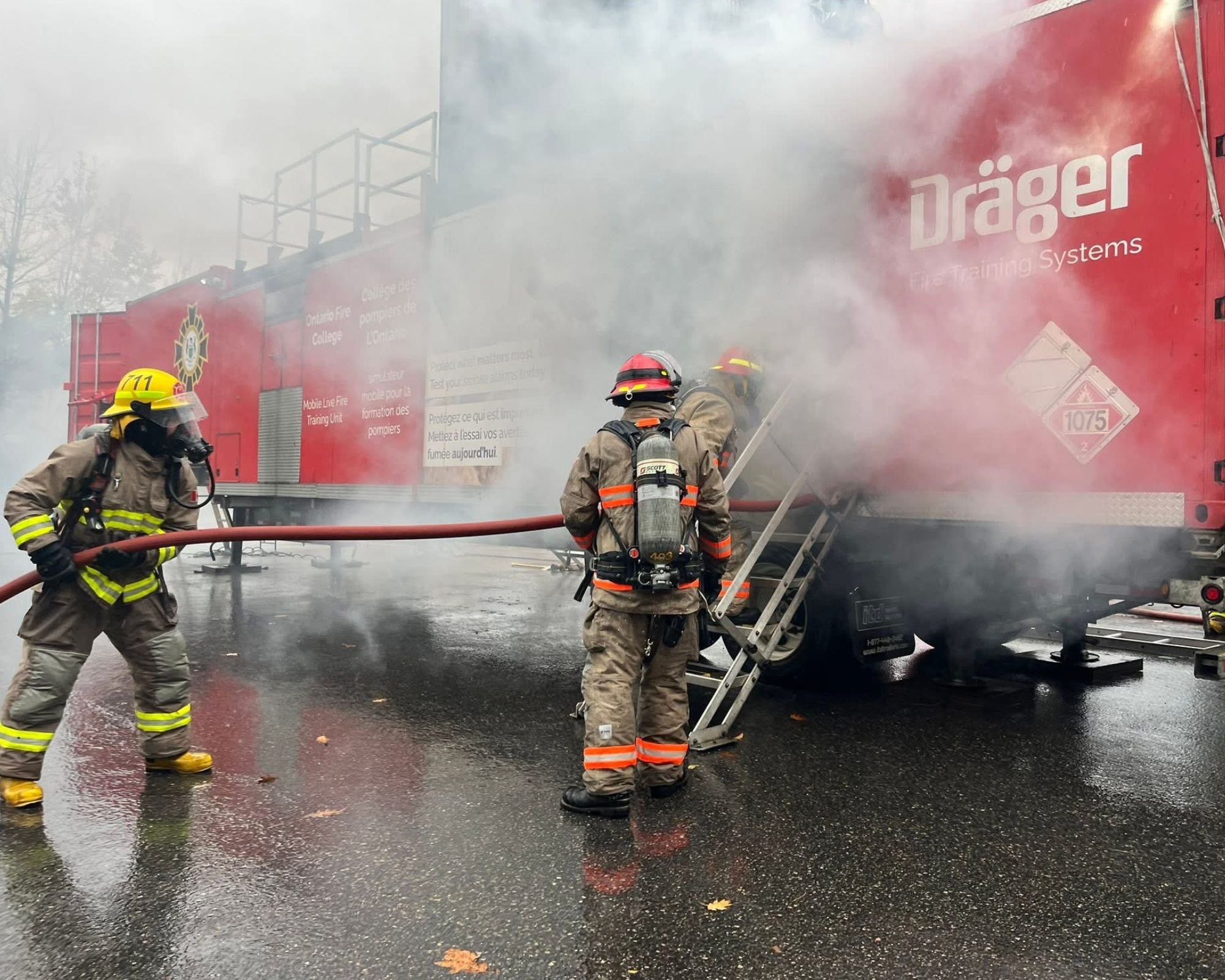 The MLFTU is a propane-fueled state-of-the-art live-fire simulator, expertly managed by Ontario Fire College instructors and funded by the Office of the Fire Marshal (“OFM”). This initiative is designed to enhance crucial firefighting skills, including fire suppression, pumper operations, and incident management systems.